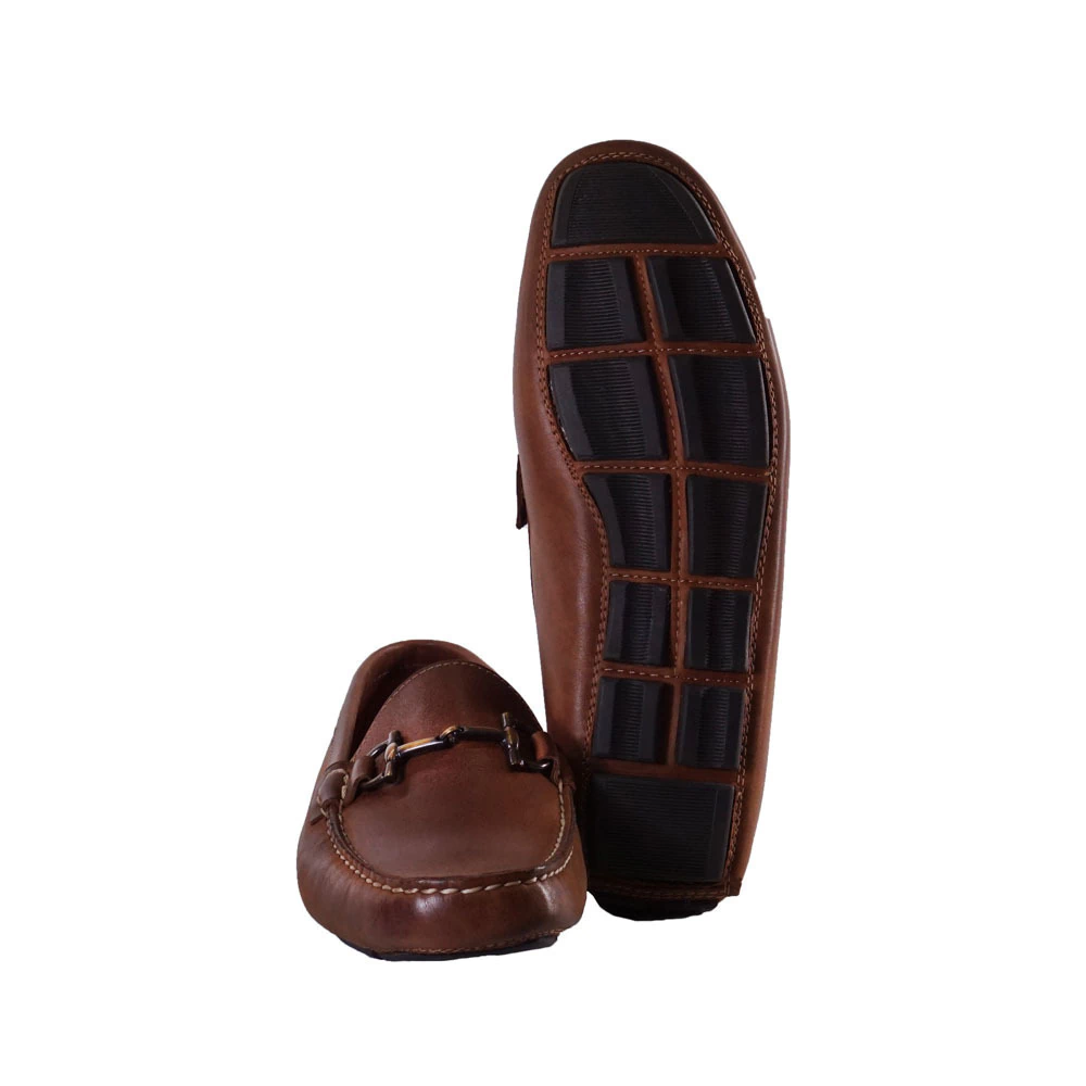 Mocasín de cuero vacuno ultra liviano, con herraje, cosido a mano , y con suela de goma integrada.